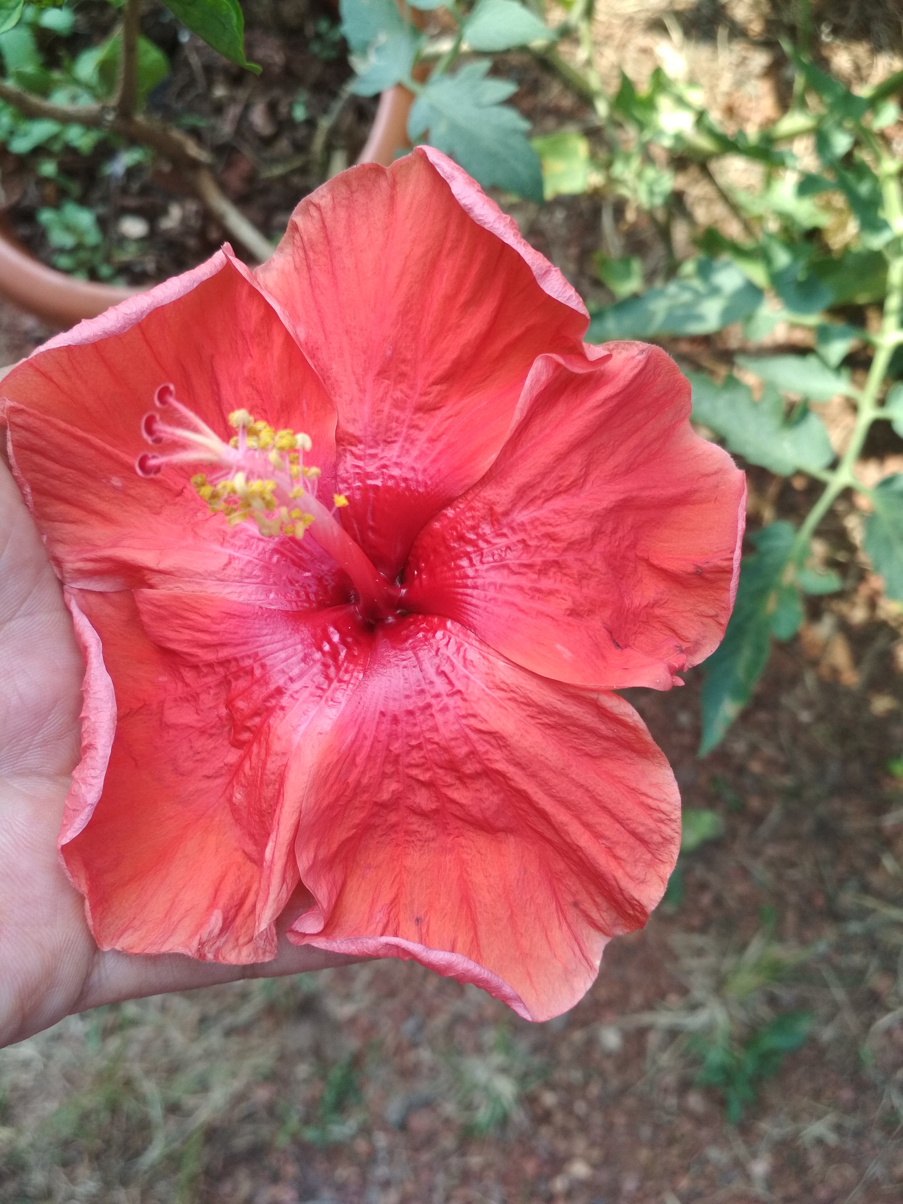 I have planted all my hibiscus in plastic pots as I stay in a rented apartment. While taking care of any plants you have to consider three main points